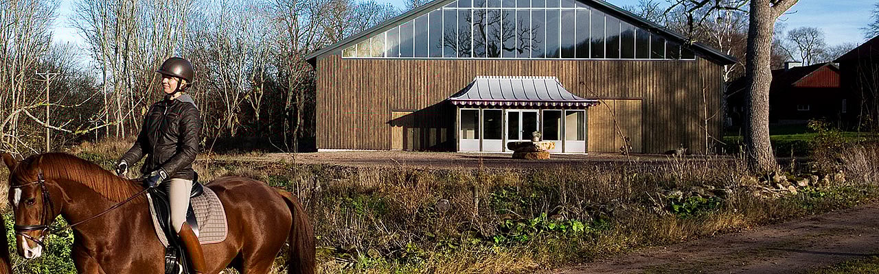 When Annette Hemberg at Råbäck began planning her riding hall, there were two important aspects to consider. The first was location: the riding hall must be adapted to the setting around the manor house and its other buildings in a natural way. The other was to show consideration for the estate’s natural surroundings in the Kinnekulle area, which have long been classed as a nature reserve.