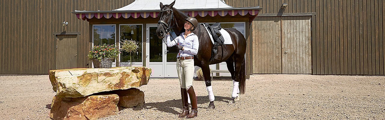 Råbäck Estate currently runs an active horse-breeding business with a focus on pace horses for dressage. The concept also includes breaking in and training offspring before they are offered for sale, as well as open courses. The entrance section of the new riding hall offers the option for visiting riders with horses to stay overnight with a kitchenette and a pleasant café area. The grounds at Råbäck have plenty of riding paths to explore in very picturesque surroundings. Access to a modern riding hall and a good working environment have been important factors in developing Råbäck’s breeding and training operations.